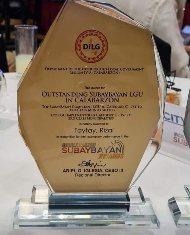 Taytay’s recognition as a top SubayBayan LGU is not just a trophy on the shelf—it is a call to continue transforming governance into genuine public service. It is proof that good governance, transparency, and people-centered programs create a stronger, better community.
